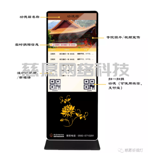 寺院管理軟件中的供奉管理里的每筆善款都會通過寺廟、道觀現場廣告機實時滾動。每筆善款清晰可見
